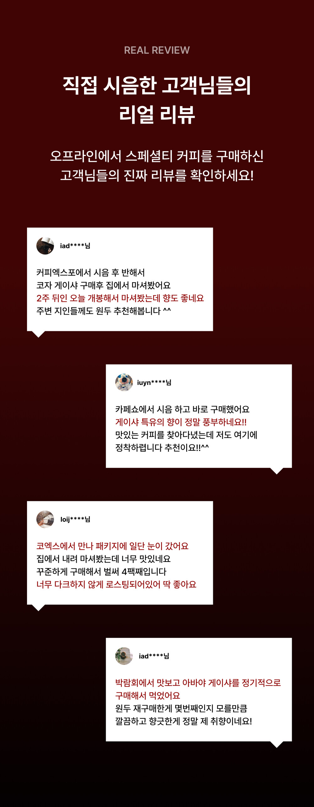 - 원두 상품의 경우 주문 접수 후 제조되는 상품으로 오주문 혹은 단순 변심으로 인한 교환∙반품이 불가능합니다.