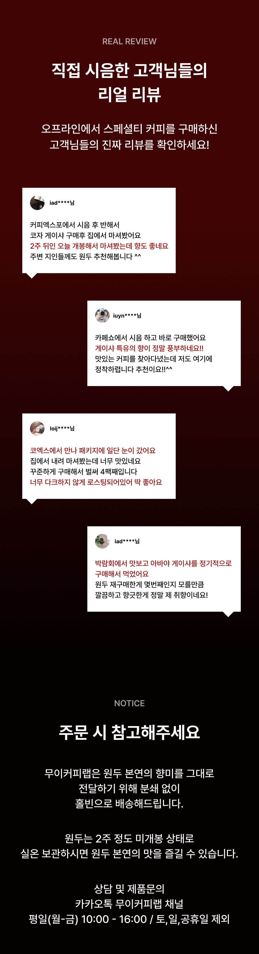 신청 방법 ㅣ 상품을 수령하신 날로부터 7일 이내로 카카오톡 @mooicoffeelab 및 홈페이지 질문게시판을 접수